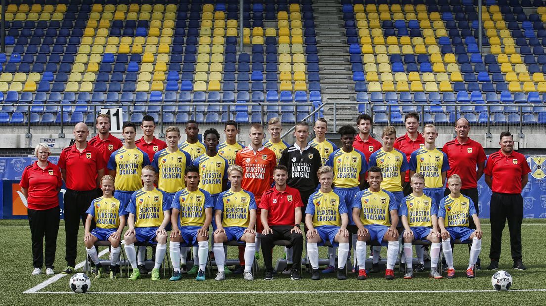De onder 17 van Cambuur in 2017, met Sierksma zittend in het midden en Van der Meer vierde van links op de middelste rij