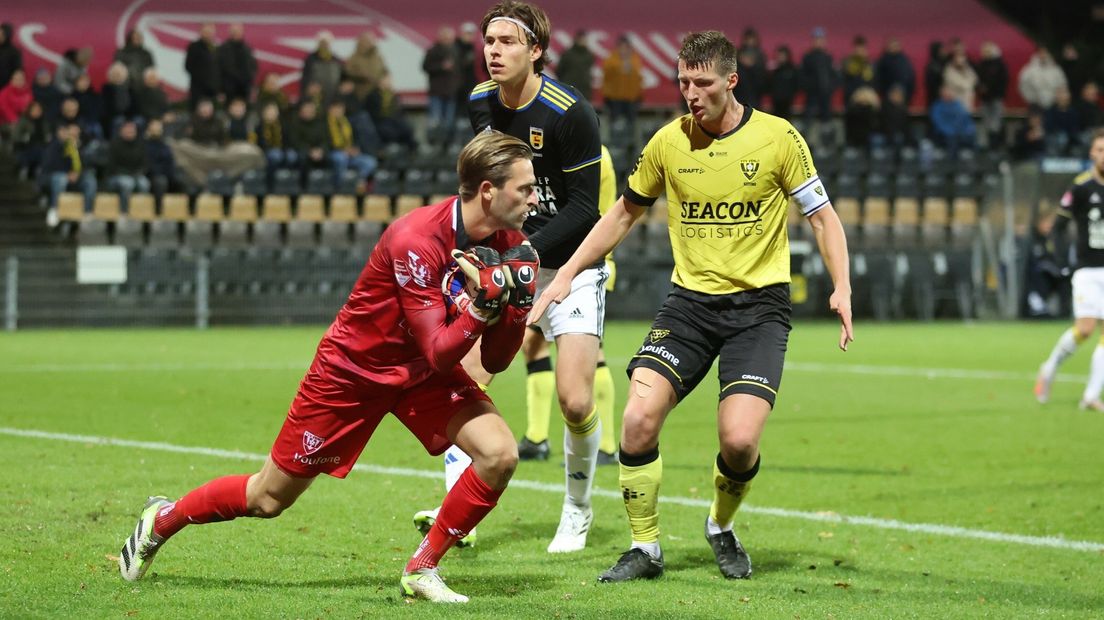 Een paar minuten later werd VVV voor het eerst gevaarlijk. Mounir Allouch schoot de bal op de paal en Cambuur-keeper Yannick Van Osch pakte daarna een kopbal van spits Pepijn Doesburg.