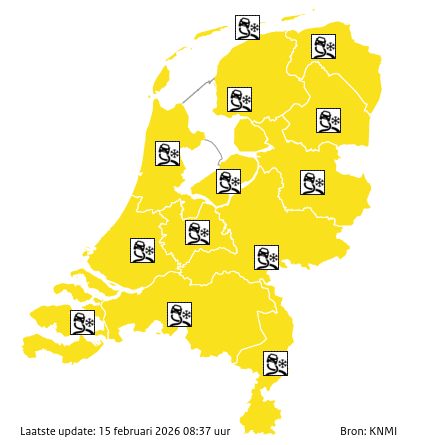 Het KNMI heeft code geel afgekondigd. In Friesland geldt code geel tussen zondagavond 20.00 uur en 7 uur maandagmorgen.