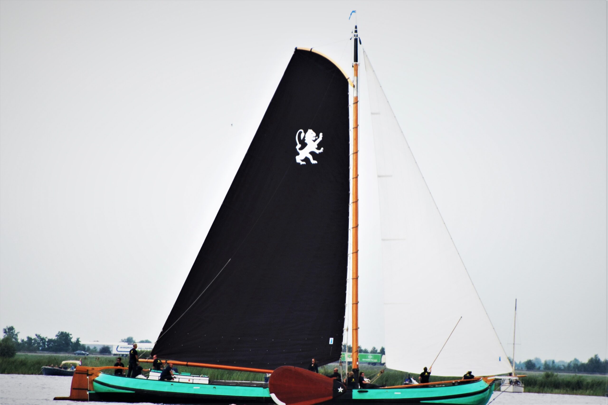 Richting finish streden beide Leeuwarder skûtsjes voor de dag overwinning. Leeuwarden hield stand.