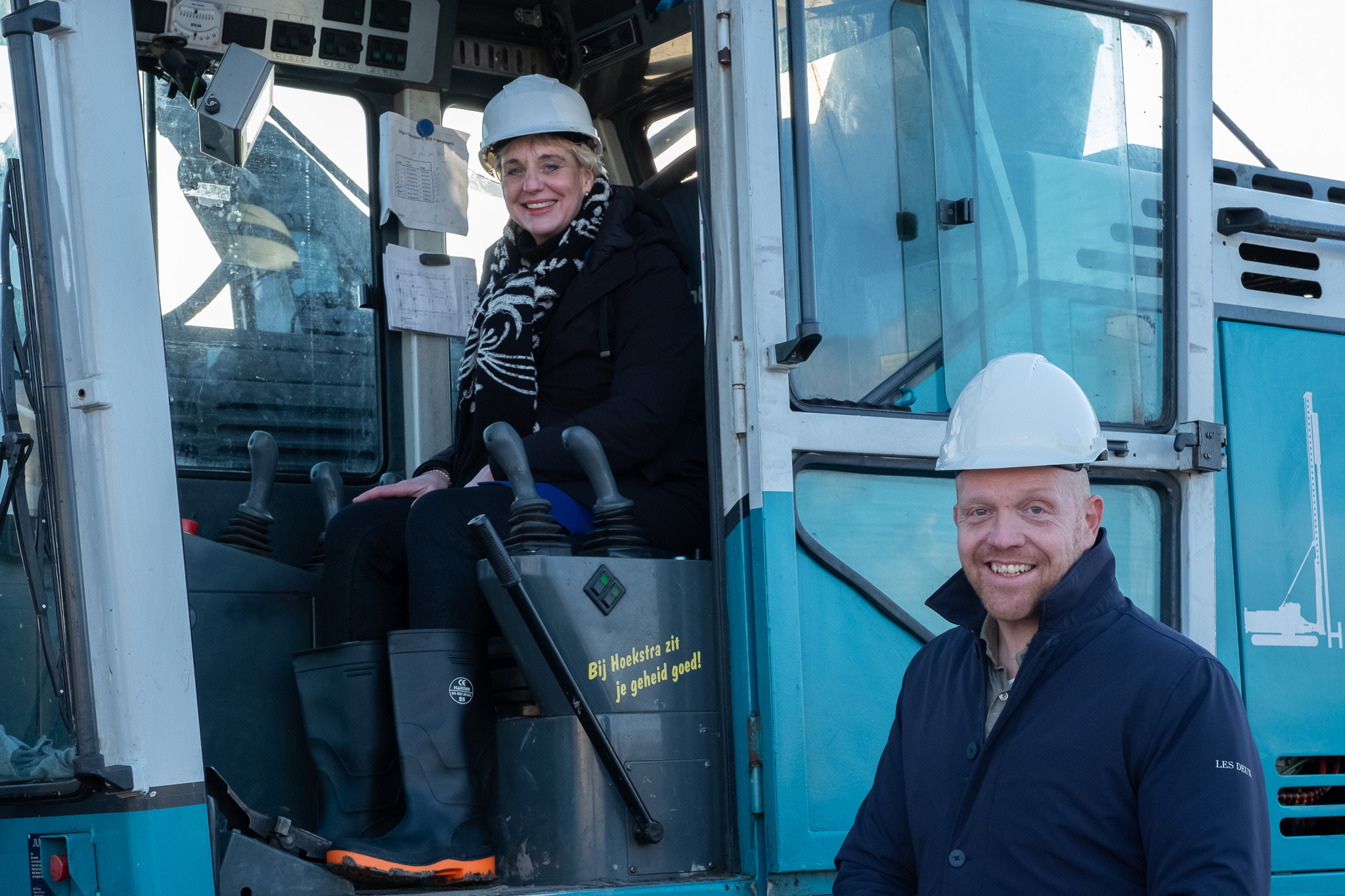 Nieuwe bewoonster mevrouw van der Wal en wethouder Hein de Haan slaan de eerste paal
