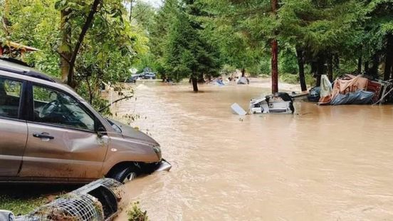 Zijn buurman deed een poging, maar zat al snel vast en kon vanuit de auto in veiligheid komen. Vervolgens zijn ze van de camping gehaald. “We moesten te voet door het water om richting het droge te gaan. Ik heb nog twee kinderen van één van de buren aan de hand meegenomen. De stroming was echt behoorlijk sterk.”