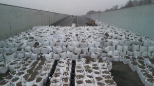 Zandzakken op de A7 tussen Sneek en Joure,