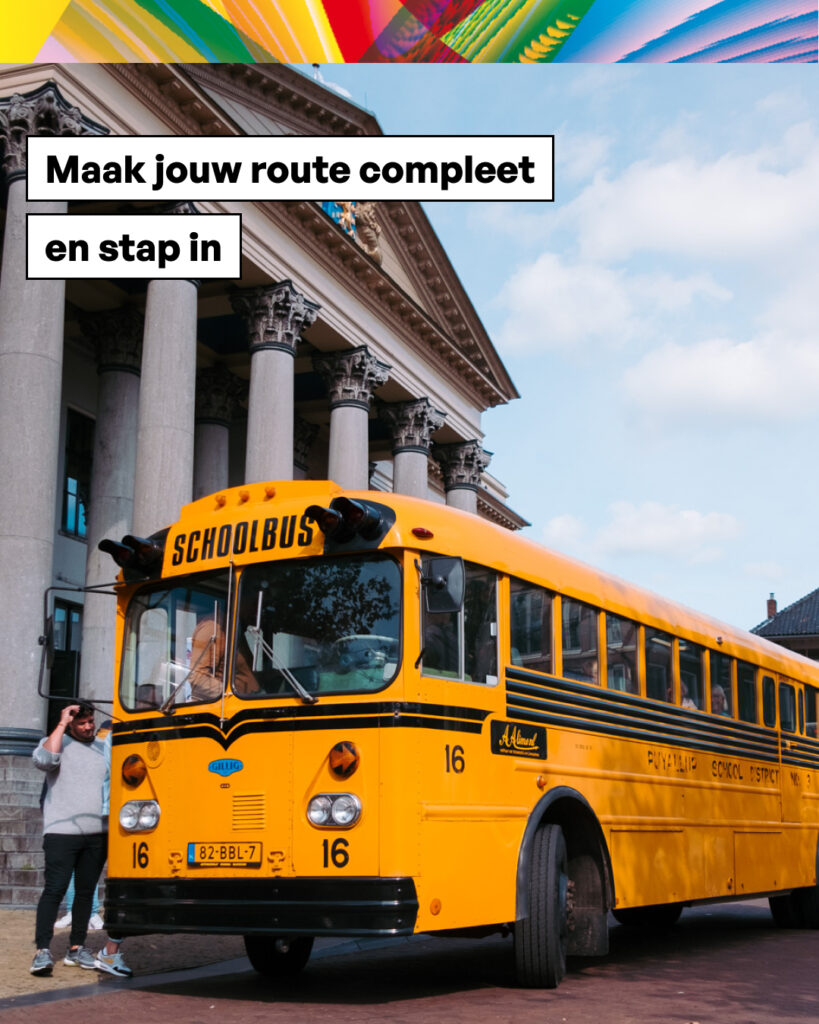 Ook dit jaar rijdt de vrolijke Amerikaanse schoolbus weer, die je van het Wilhelminaplein via de Schrans naar het Fries Landbouwmuseum brengt. Uiteraard gewoon gratis. Dus stap in en ontdek.