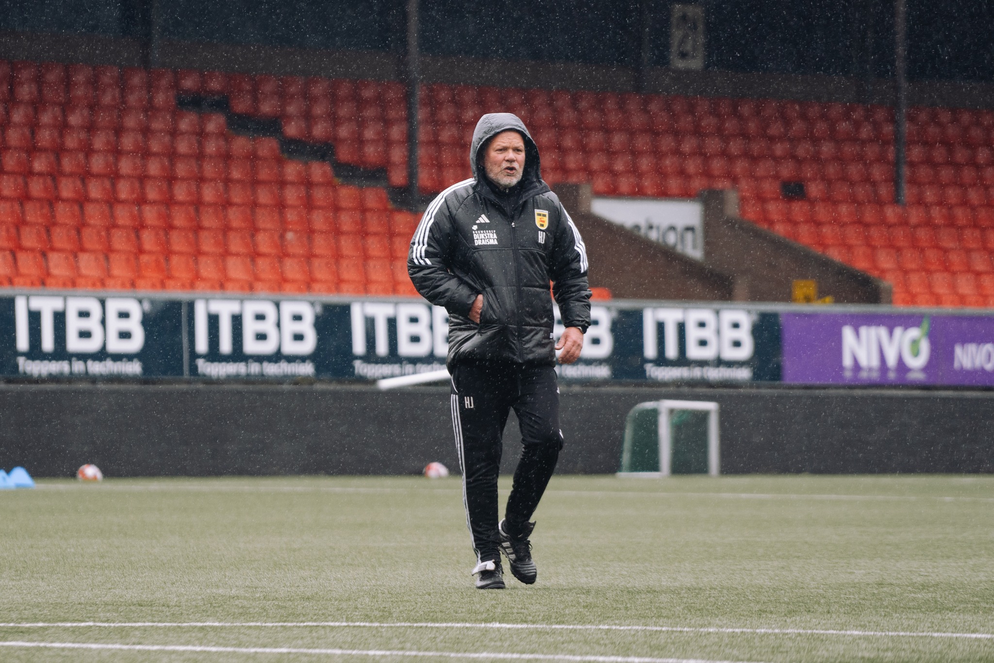 Henk de Jong tijdens de laatste training voor de wedstrijd tegen FC Groningen