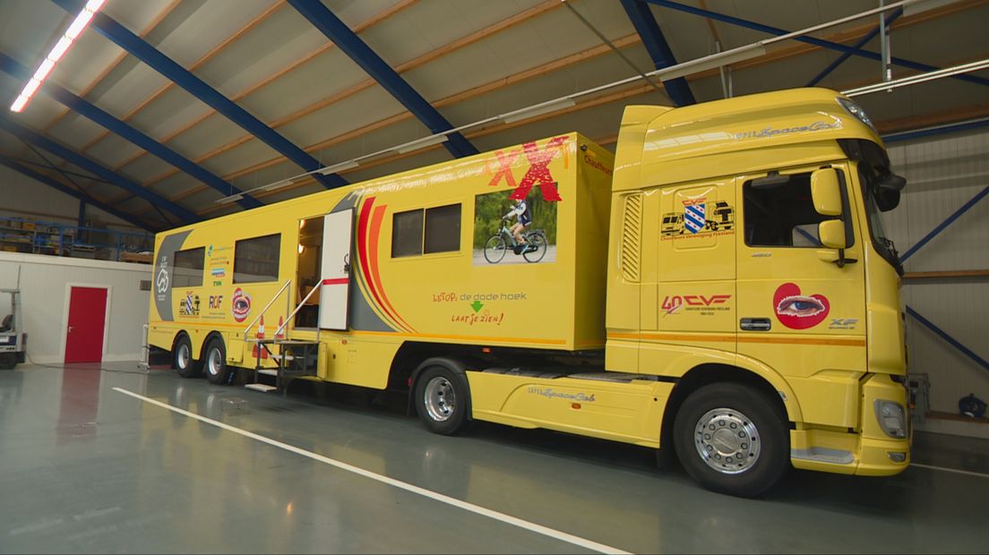 De knalgele truck die kinderen het gevaar van de dode hoek moet leren. Al bijna 30 jaar gaat Klaas Hoekstra ermee bij scholen in Fryslân langs om voorlichting te geven. Maar dit weekend nemen hij en zijn vrouw Jannie – exact 40 jaar na het oprichten – afscheid van de Chauffeurs Vereniging Friesland.