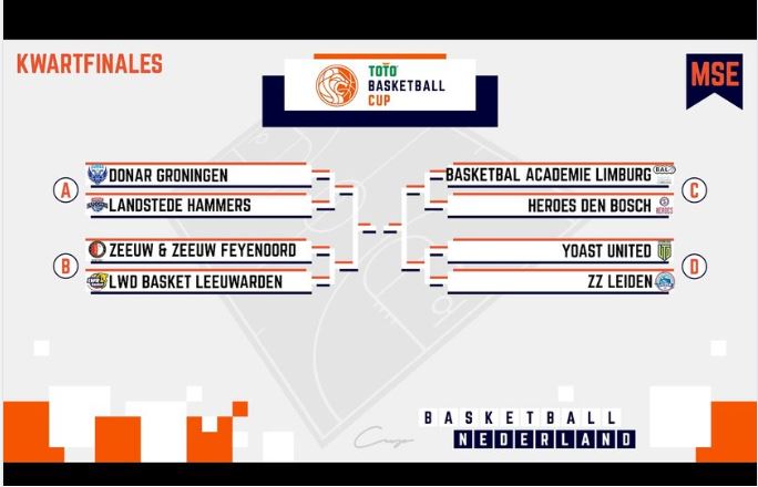 Na de voorrondes van het bekertoernooi, de Toto Basketbal Cup, stroomden de teams uit de BNXT League binnen. Verrassingen bleven daarin uit. Acht eredivisie teams plaatsten zich probleemloos. Na de winst op River Trotters plaatste ook LWD Basket zich voor de kwartfinale. Tegenstander in de kwartfinale is Zeeuw en Zeeuw Feyenoord Basketball uit Rotterdam.