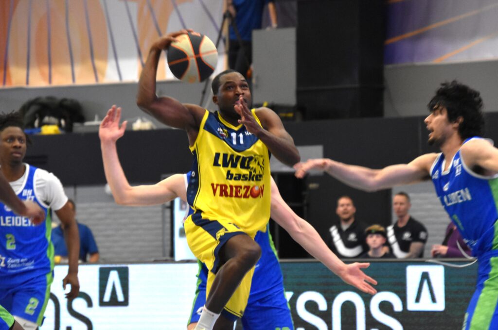 Bij Leiden moest de reus Brad Greene al direct naar de kant met een (enkel)blessure wat een tweede aderlating betekende. Matt Frierson vuurde zijn tweede – derde – vierde drietje af en drie vrije worpen naar 48-59. LWD Basket had de wedstrijd verder aardig onder controle met het verschil lang rond de tien punten voorsprong. Het was Stan van Elzen bij Leiden die de nodige weerstand bood en zijn team in de race hield. Na 58-67, en met zes punten op rij naar 61-67, was hij bij Leiden de gevierde man.