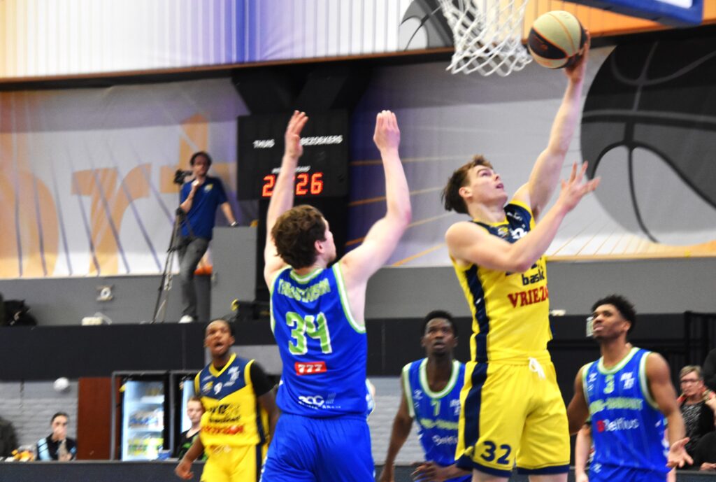 Wakker geschut, vuurden Whitfield en Murray begin tweede kwart twee bommetjes af naar 28-27 en 31-29. Maar het zou het kwart van Joel Murray worden die de Leeuwarders met een score van 15 punten bij de hand nam. Een keer mochten de Belgen nog een keer langszij komen naar 42-42. De thee smaakte bij een ruststand van 52-48 dan ook extra zoet.