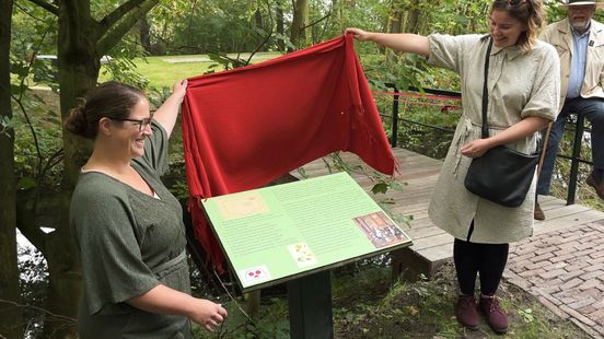 Leden van de stichting Jousmastate onthullen het nieuwe informatiebord