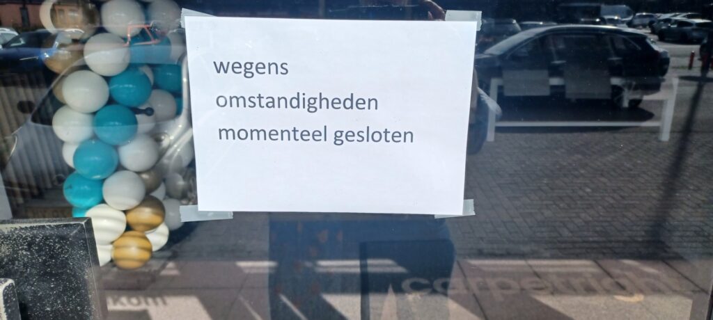 Dit briefje hangt op de deur van Carpetright op winkelpark de Centrale in Leeuwarden