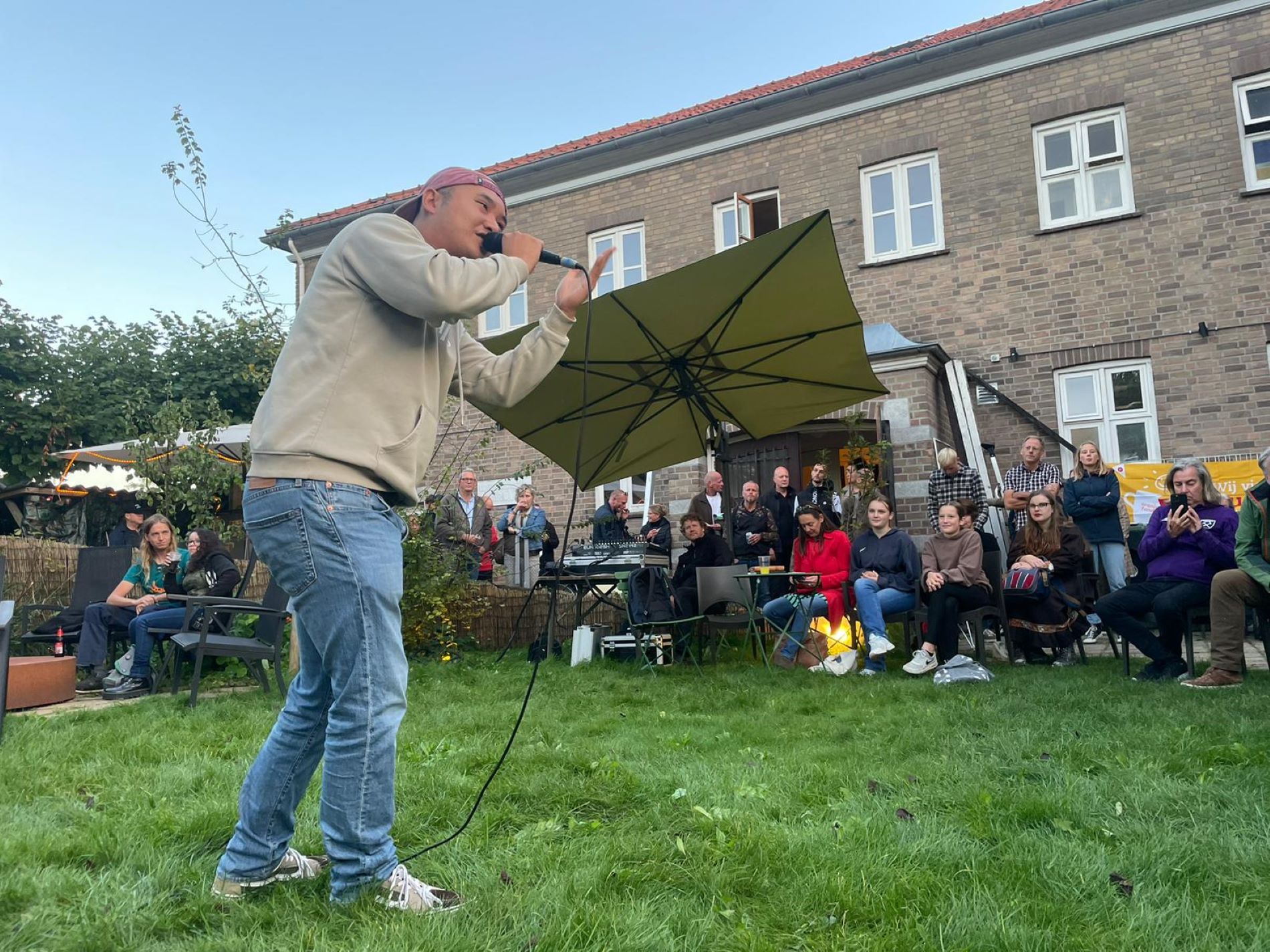 Buiten op de toekomstige buurttuin zijn bijzondere workshops: Oekraïense bloemkronen maken, een wormenhotel knutselen of meehelpen aan een grote muurschildering. Daar staan ook de foodtrucks.Voor een bezinningsmomentje kun je terecht bij het Straataltaar van de Jacobijnerkerk en de Geloof Hoop en Liefde-bank van het televisieprogramma.